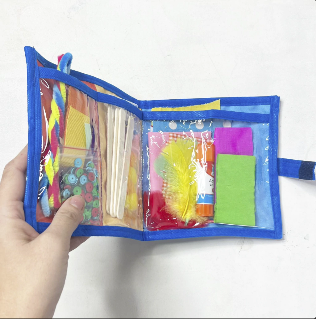Trae variedad de materiales para hacer manualidades y dejar volar la imaginacion.